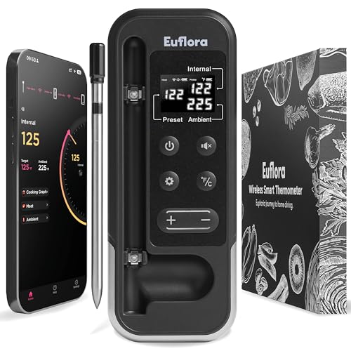 Wireless Meat Thermometer with Digital Meat Probe, Measures Internal & Ambient Temp, 800FT Bluetooth Meat Thermometer with Host Control for Barbecue, Outdoor Grilling, Oven & Smoker (Black)