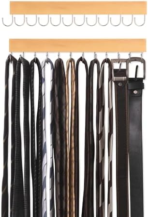 StorageWorks Belt Organizers for Wall, Wooden Belt Holder, Belt Storage with 12 Hooks, Belt Rack for Closet Wall Mount, Belt Hangers for Men, Natural Wood Color, 2 Pack